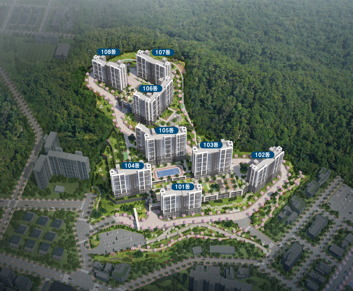 주차 대수 | 683대 (세대당1.6대이상) | 규모 | 지하 3층, 지상 15층, 8개동 |